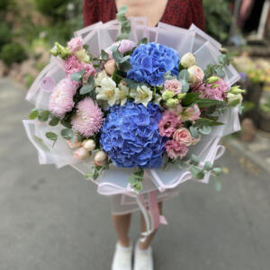 Наш авторский букет “Лунный Вальс” – это воплощение элегантности и нежности, которое приведет в восторг даже самые изысканные вкусы. В этом букете мы объединили красоту кустовых сиреневых роз, изысканность одноголовых хризантем, изящество одноголовых роз сорта Квиксенд и ароматное дыхание эвкалипта. Каждый цветок в этой композиции – настоящее произведение искусства, созданное с любовью и профессионализмом нашими опытными флористами. Мы гарантируем высочайшее качество и свежесть каждого цветка.