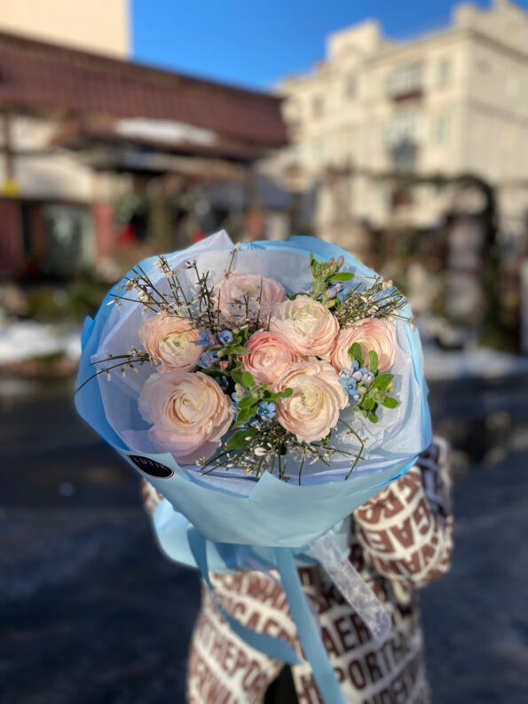 Добро пожаловать в мир утонченных цветочных произведений искусства, созданных командой Лютик! Наш авторский букет “Небесный Шарм” – это изысканное сочетание нежности и элегантности, которое покорит ваши сердца. Ранункулюсы, с их изящными лепестками и яркими оттенками, приносят в композицию нотку красоты и восхищения. Небесная твидия, словно взявшая свои оттенки у самого неба, добавляет волшебства и загадочности, создавая непревзойденную атмосферу. Ароматная гениста, с ее насыщенным и притягательным запахом, завершает эту симфонию цветов, наполняя воздух чарующим ароматом. Каждый букет уникален, как произведение искусства, созданный с любовью и вниманием к деталям. Мы гарантируем свежесть и высочайшее качество каждого цветка. Наша служба доставки в Гомеле позаботится о том, чтобы ваш особый подарок достиг адресата вовремя, сохраняя свою красоту и изысканность. Откройте дверь в мир эмоций и восторга с Лютик. Сделайте заказ сейчас, чтобы создать незабываемый момент и подарить волшебство вашим близким.