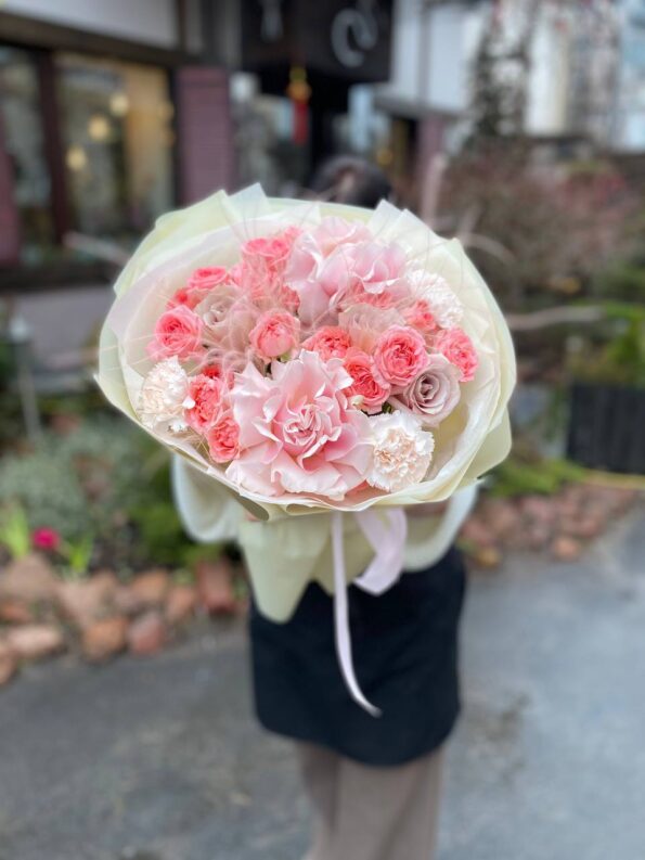 Диантусы добавляют букету игривости и свежести. Их пастельные оттенки, привлекают взгляды и создают атмосферу радости и веселья. Диантусы придают букету жизнерадостный характер и делают его особенно привлекательным.