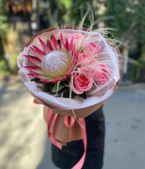 Встречайте волшебство природы в наших сборных букетах цветов, созданных с любовью и искусством! Наш букет, состоящий из нежных роз, величественных кустовых роз и элегантного эвкалипта, одновременно восхищает и пленяет сердца.