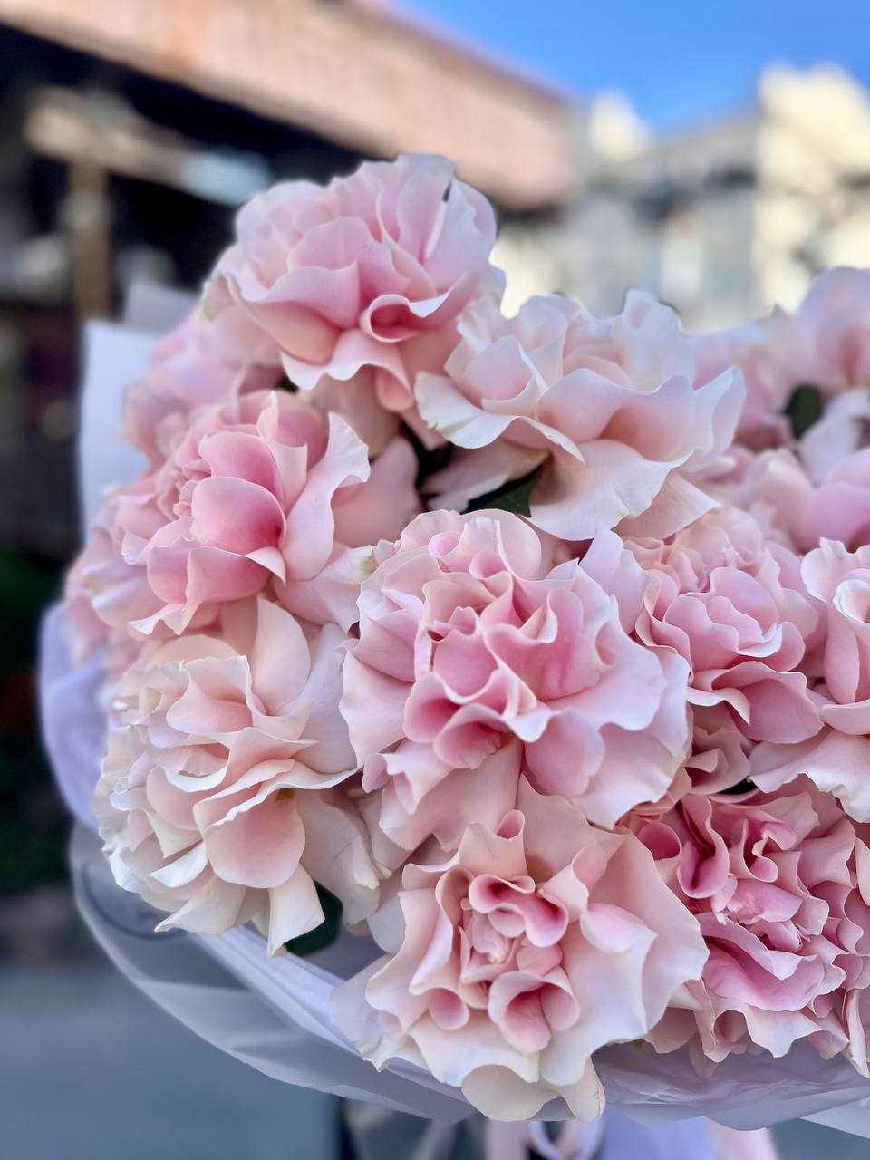 Свежие цветы от Lutik доставляются в фирменной упаковке, которую необходимо снять при установке в вазу. Не срезайте ленту, связывающую букет для сохранения формы.