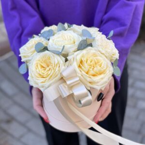 💖 Этот букет впечатляет своей простотой и изысканностью. Одноголовая роза сорта Квиксенд, с ее элегантными и изящными лепестками, приносит романтику и нежность. Каждый цветок – это символ любви и прекрасный способ выразить свои чувства. Эвкалипт, с его ароматными листьями и зеленым оттенком, придает букету свежесть и приятную атмосферу.