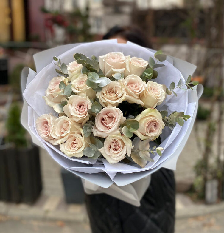 💖 Этот букет впечатляет своей простотой и изысканностью. Одноголовая роза сорта Квиксенд, с ее элегантными и изящными лепестками, приносит романтику и нежность. Каждый цветок – это символ любви и прекрасный способ выразить свои чувства. Эвкалипт, с его ароматными листьями и зеленым оттенком, придает букету свежесть и приятную атмосферу.