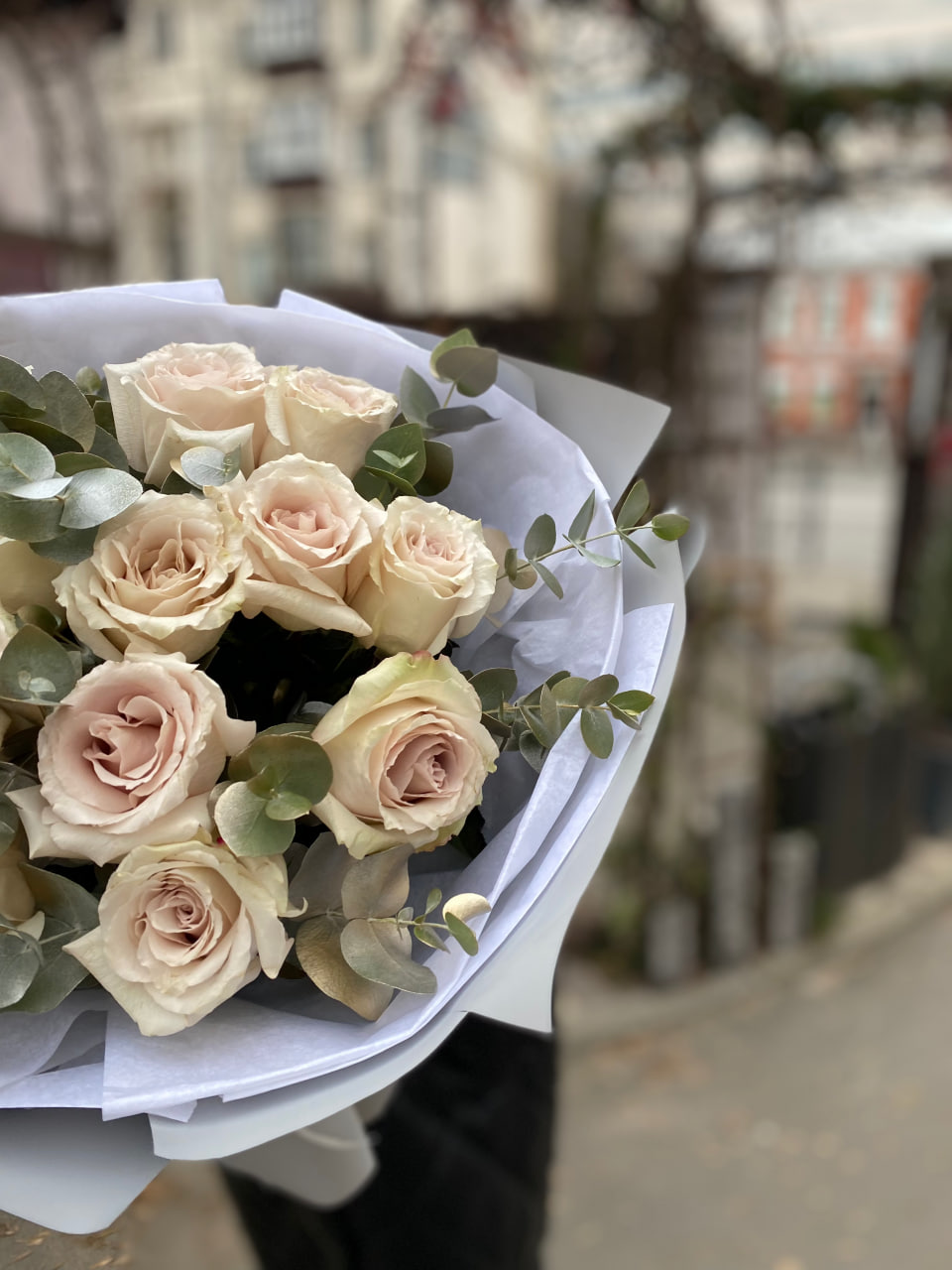 🌹🌿✨ Отправьте уникальный авторский букет от Лютик с одноголовой розой сорта Квиксенд и эвкалиптом! ✨🌿🌹