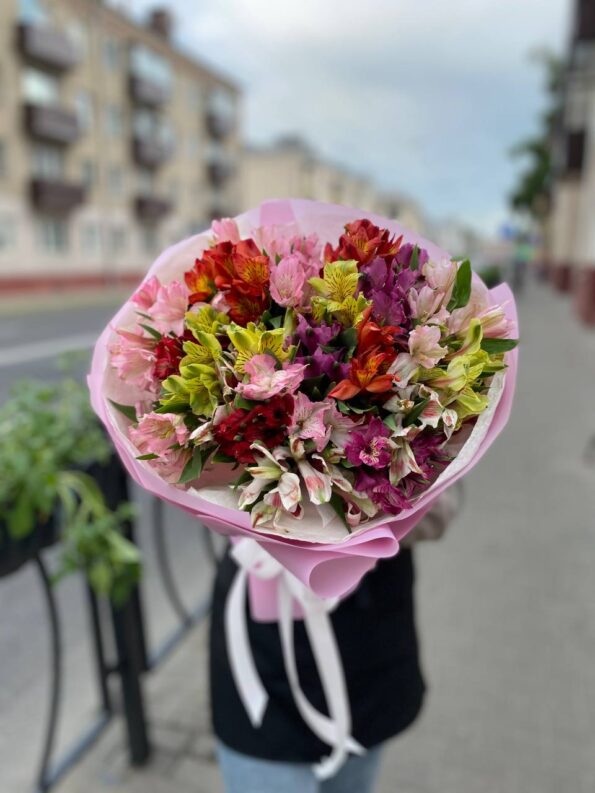 Эта яркая, живая композиция из уникальных тропических цветов станет настоящим произведением искусства, притягивающим восхищенные взгляды. Она наполнит пространство вокруг собой, даря ощущение радости, свежести и праздника. Такой букет из альстромерий определенно станет изысканным украшением интерьера любого помещения цветочной студии “Лютик” в Гомеле.