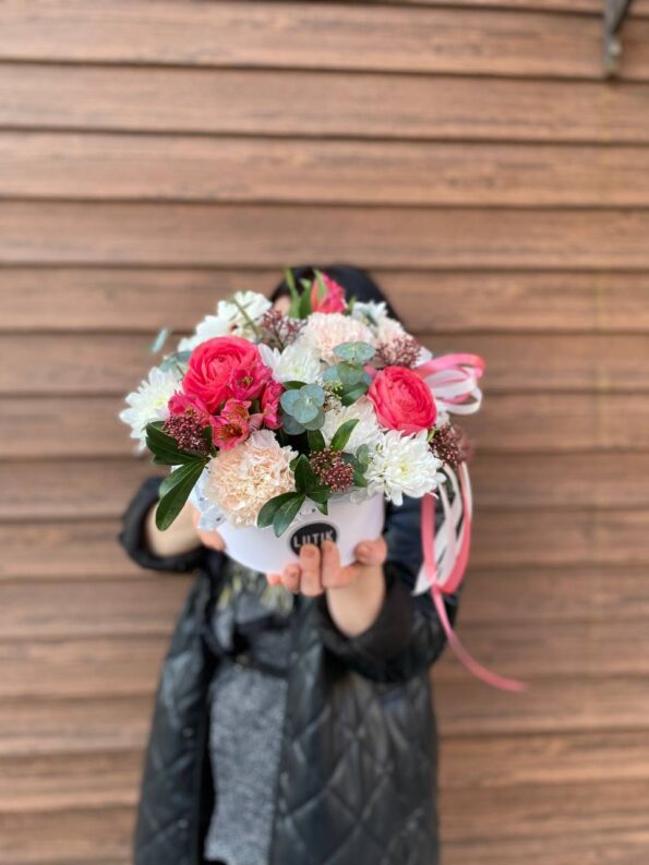 | Состав | Гвоздка (Диантус), Кустовые розы, Ранункулюс |
